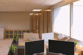 Le projet de rénovation des locaux administratifs du service des douanes repense l'organisation des postes de travail et des circulations dans le bâtiment. Avec un système de mobilier en bois sur mesure et des cloisons légères, les espaces de travail sont modulables à souhait et s'adaptent ainsi aux évolutions de l'organisation. La lumière naturelle a été privilégiée pour l'ensemble des postes de travail.