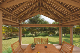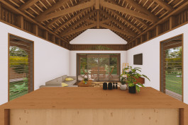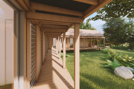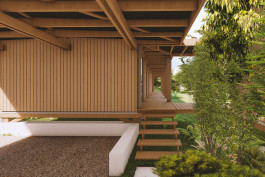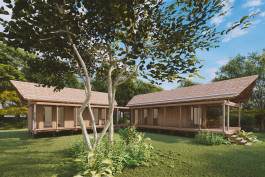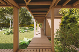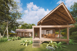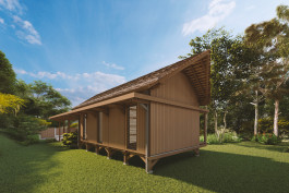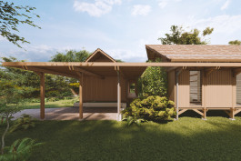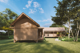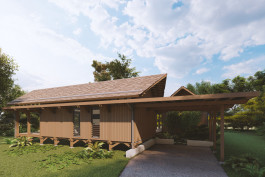 Following French Polynesia's impulse, in partnership with the Direction de l'Agriculture (DAG), for developing a locally-sourced bioclimatic house, this project is the first prototype to be built. Located in Moorea, the two-bedroom house is made of local wood and designed in accordance with bioclimatic architectural principles. The L-shape of the house and the outdoor corridors create several patios and covered areas that allow for a good ventilation and comfort. The building fits seamlessly in the surrounding forest.
