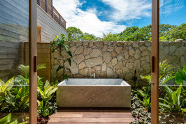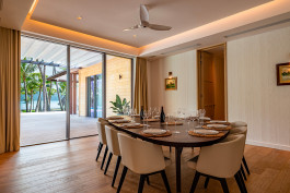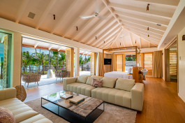Located on a 'motu' in Bora Bora, this luxury private villa offers the ultimate luxury experience. The interior design concept is thought in layers. The basement features precious wood in dark colors and deep blue furniture evoking the deep ocean. The upper levels showcase lighter colors and brighter wooden furniture and art pieces. Initial project by PRD Patrick Raffeneau (Preliminary Design). Interior design in collaboration with Studio PCH.
