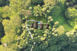 Nestled beneath the treetops of a Caribbean pine forest, this villa is located in the heart of nature in Tahiti. With a style inspired by traditional Balinese constructions, the project combines solid wood frameworks, monumental doors and joinery, tropical gardens and water features. The entrance is framed between two stone walls, revealing generously dimensioned spaces and a monumental fireplace. The villa backs onto the mountain and its living spaces are projected towards the view and the ocean.